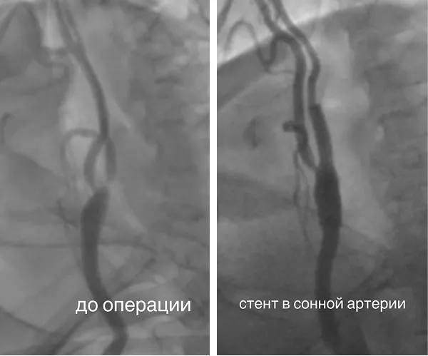 Чтобы предотвратить эти угрозы, выполняется стентирование сонной артерии, где обнаружена крупная бляшка. Это современная эндоваскулярная операция: через небольшой прокол в артерию устанавливается стент, который расширяет суженный участок, восстанавливая полноценный кровоток к мозгу.